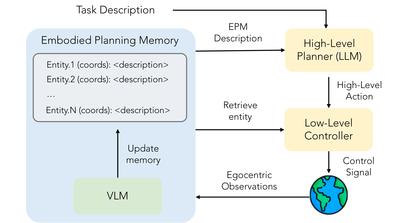 Planning with an Embodied Learnable Memory